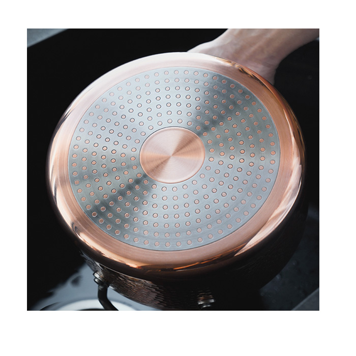 材 料 :三層銅,2.5mm鍋內部處理:精細砂光鍋外身處理:鏡面光底 部 :導磁底部把 手 :鑄鋼+槍黑色規(guī) 格: